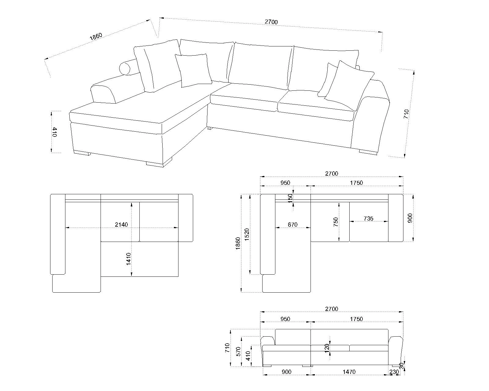 Холов ъгъл Mikaela е компактен, но стилен завършек на дневната.