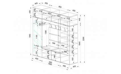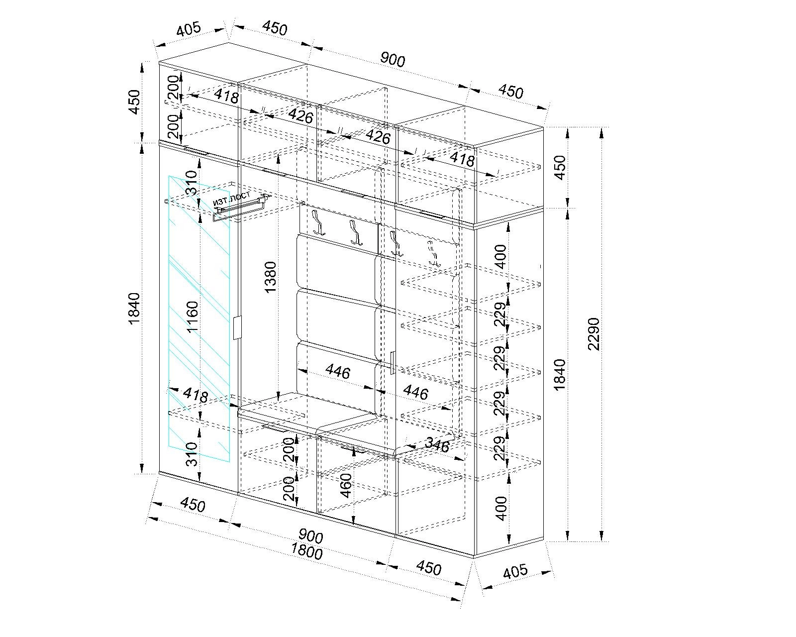 Размери : 1800 / 405 / 2290 Цвят : дъб артисан / графит Материал: ЛПДЧ с дебелина 16мм Отворете изображението за цялостна визия. Всички размери са габаритни, в милиметри и следват реда : ширина / дълбочина / височина.