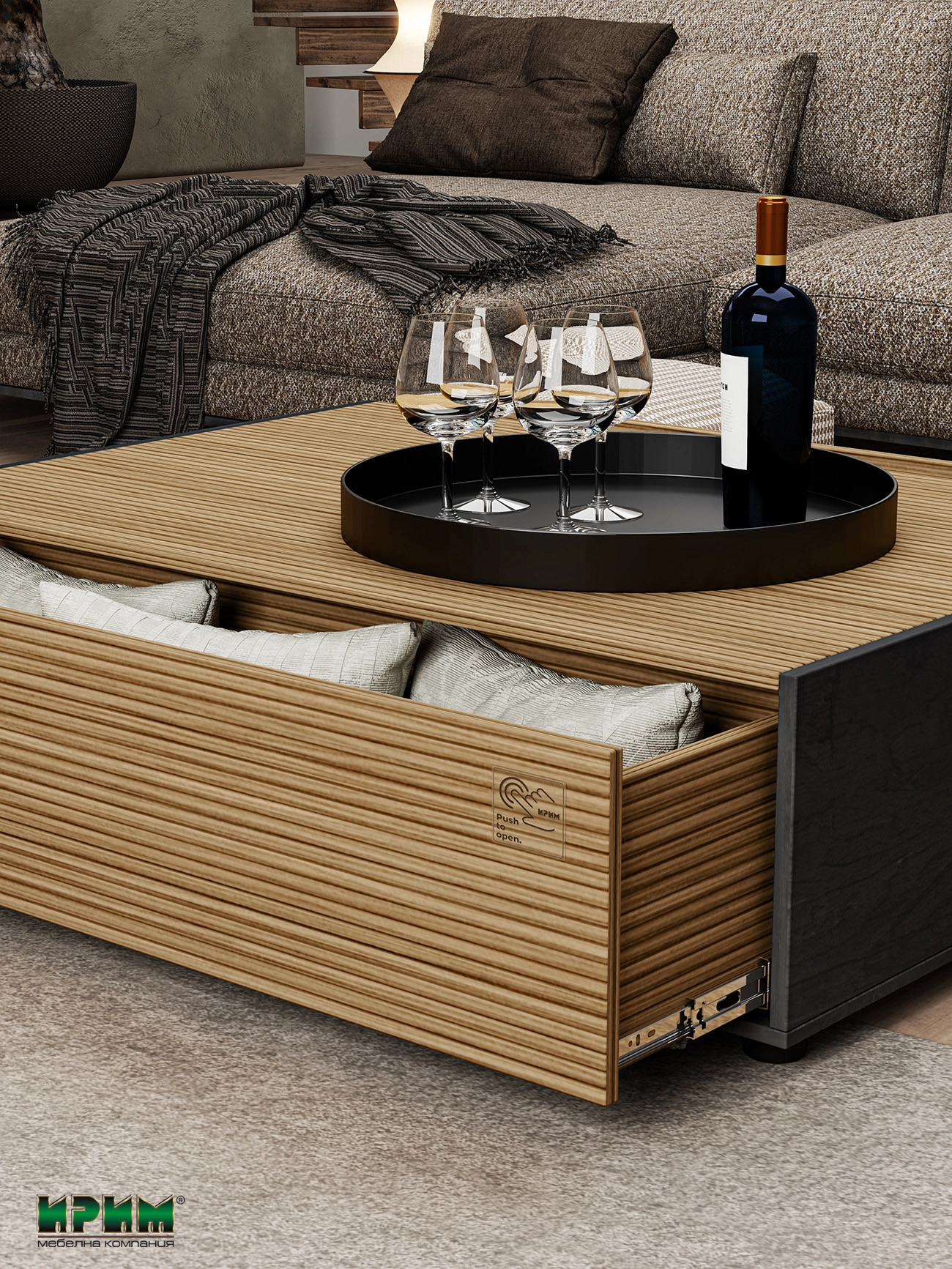 Холна маса Сити 6281 разполага с вграден пуш механизъм и пълно изтегляне на 2-те чекмеджета.