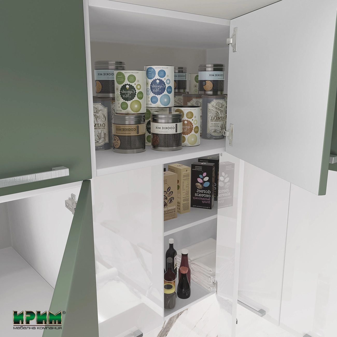Цвят: мдф олив мат / мдф бяло гланц / корпус бяло гладко