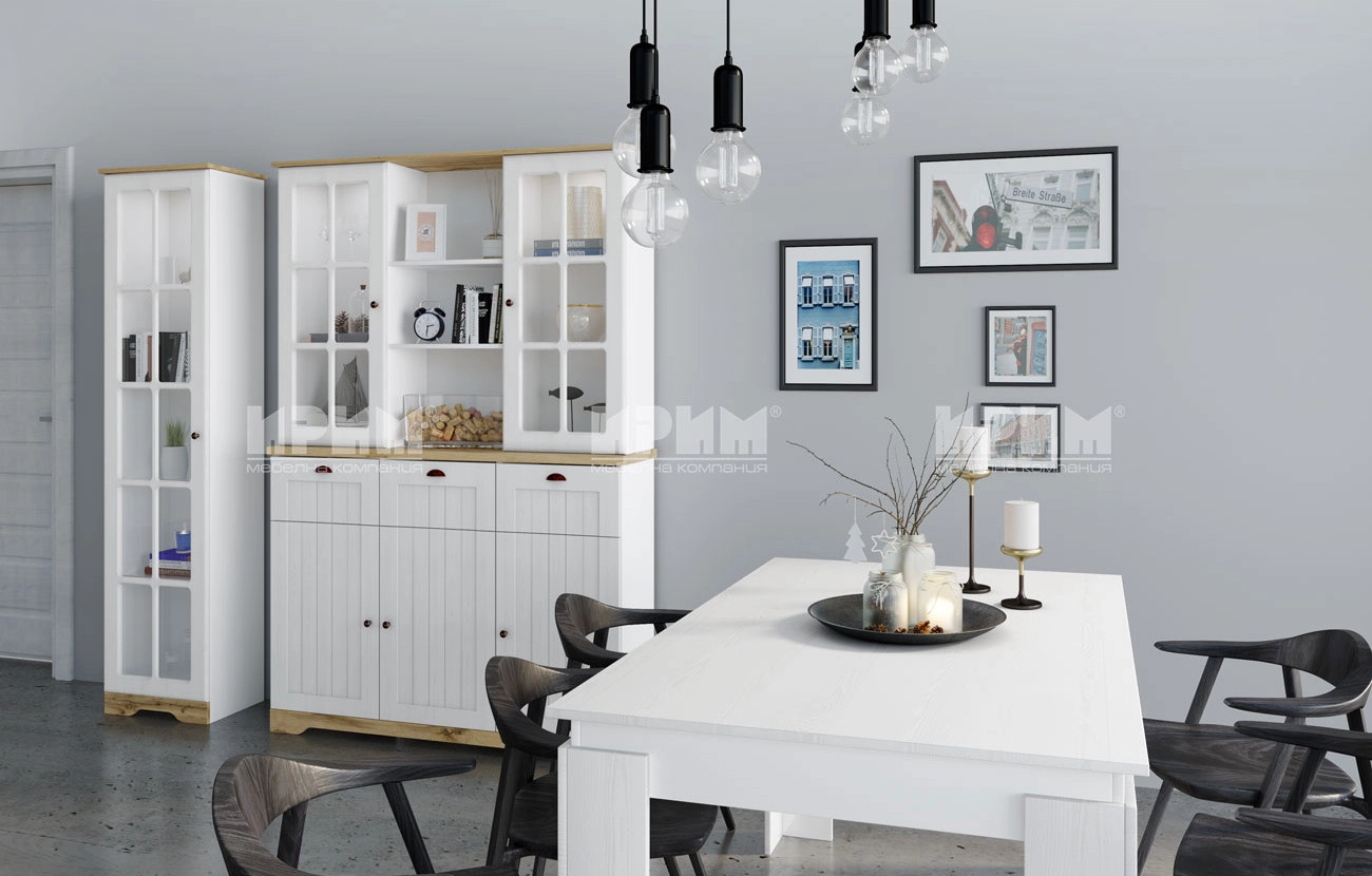 Трапезария Landscape има много старинен, но в същото време свеж образ. Тя е съчетание от голяма витрина, малка витрина, скрин и трапезна маса.